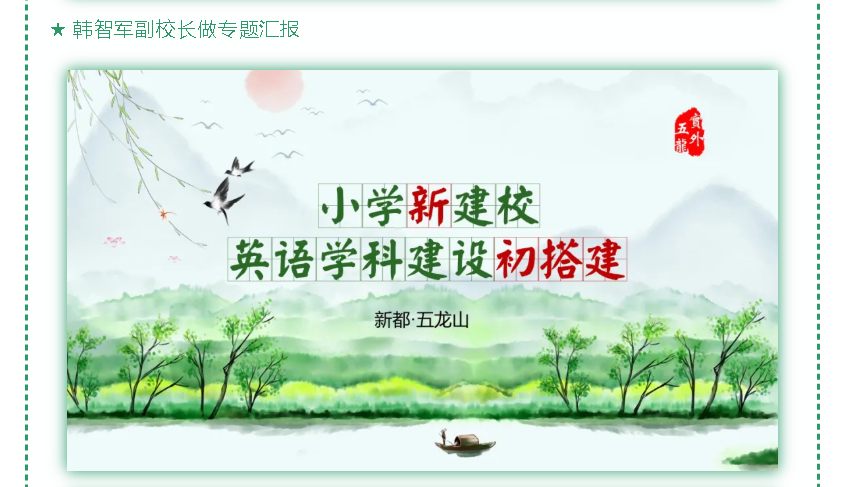 綠樹濃陰夏日長,英語芳華綻群芳 ——記實外五龍“小學新建校英語學科初搭建”教育論壇
