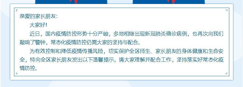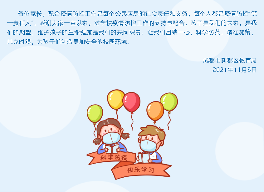 新都區教育局關于做好常態化疫情防控工作告家長書