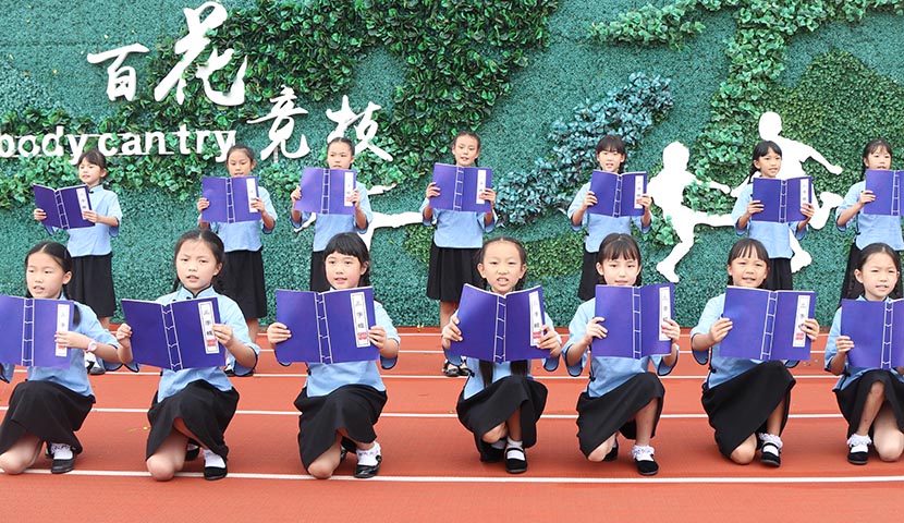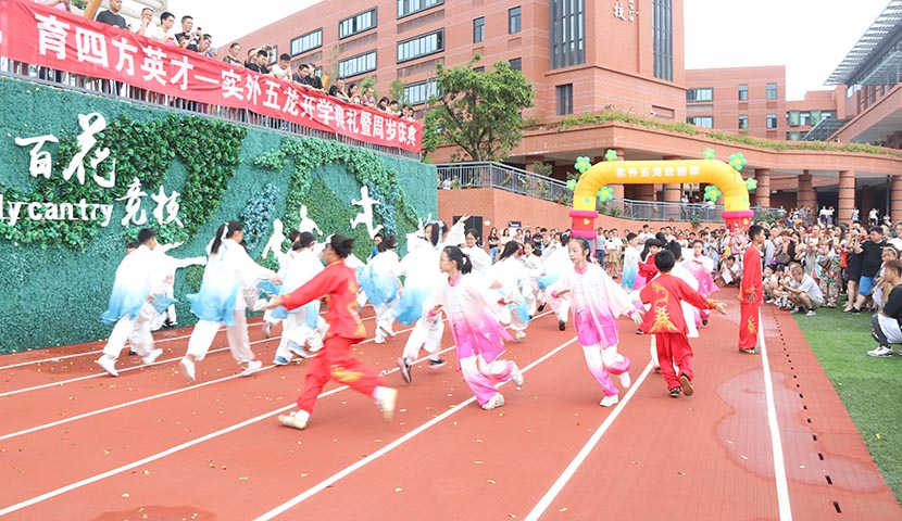 2018年9月3日,我校舉行了以“天府文化潤五龍”為主題的開學典禮。典禮上,學校的外教表演了精彩的節目,孩子們表演的《國韻太極》《經典詠流傳》《逆戰》等節目,讓人印象深刻。