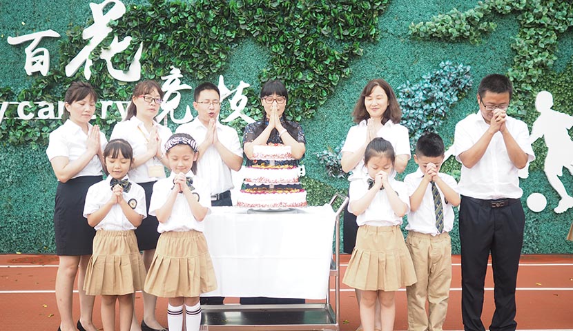 今天,還是學校一周歲的生日,周芳校長帶領全校師生,共同許下了生日的愿望,祝愿學校越來越好。