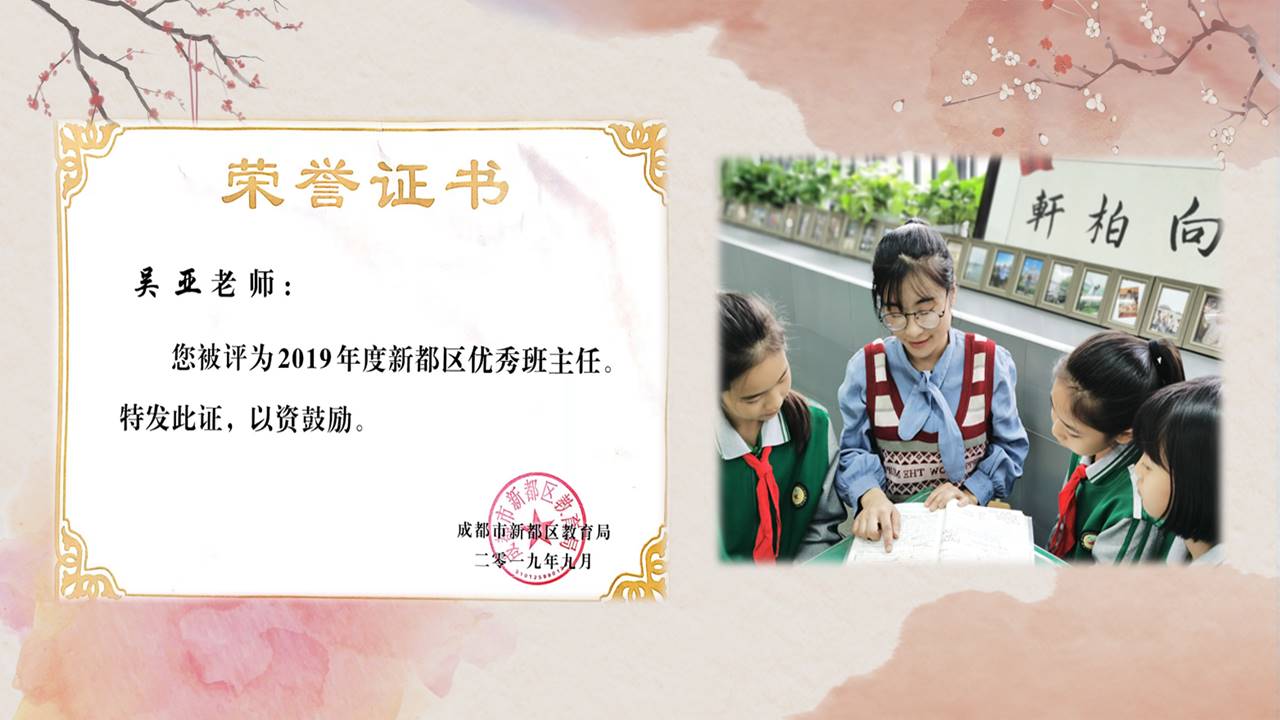熱烈祝賀我校 吳亞 老師被新都區教育局評為新都區優秀班主任