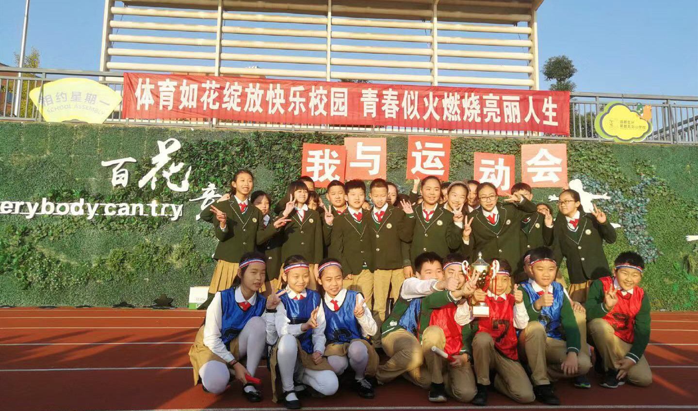 預祝本屆運動會圓滿成功!衷心祝愿每一位同學在運動場上,在今后的人生旅途中跳得更高!跑得更快!