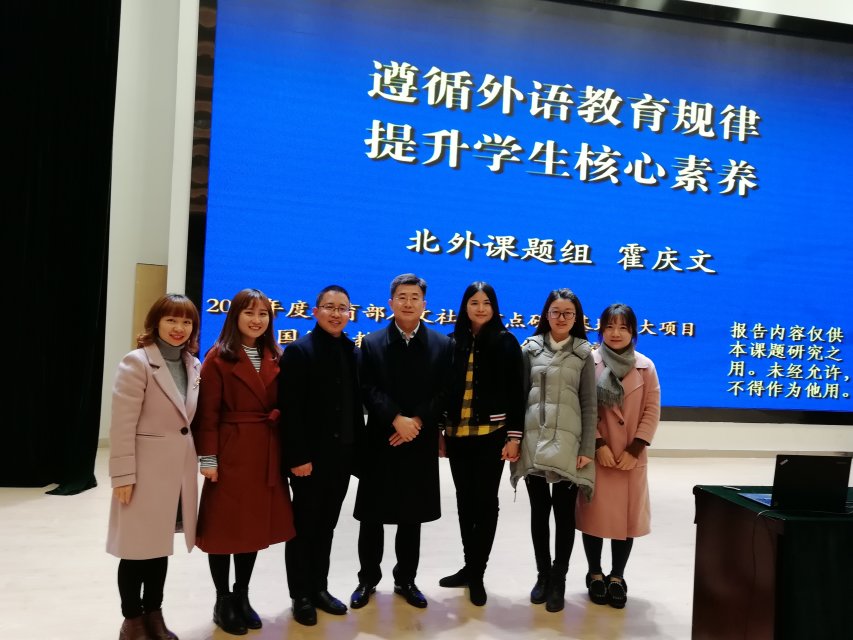 會后實外五龍全體英語組的老師們與北京外國語大學霍慶文教授合影留念