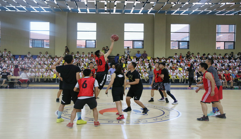 “籃球”是成都實外新都五龍山學校著力打造的體育特色課程,每周兩次的籃球社團課程是孩子們最為期盼的時光。為進一步營造學校“籃球”文化氛圍,實外五龍中小學組織了首次兩校教師”籃球聯誼賽“,兩校校長親臨助陣加油,小學全體師生激情澎湃,孩子們更是嗨翻全場,一睹賽場中小學教師颯爽英姿,如此近距離感受籃球魅力,好不愜意!忙里偷閑,是籃球拉近了兩校教師的距離,正所謂—— 籃球“聯姻”,中學小學一家親!