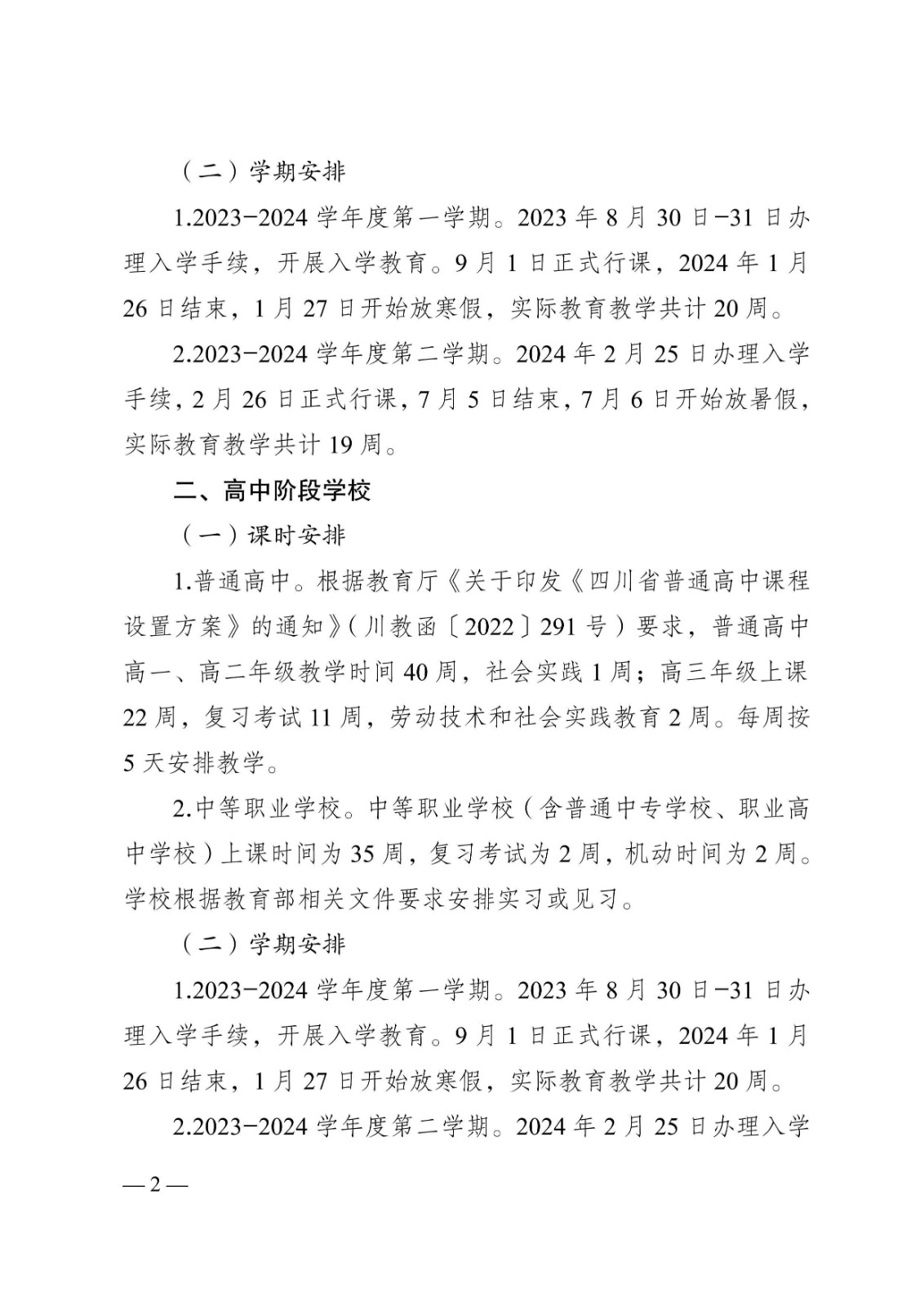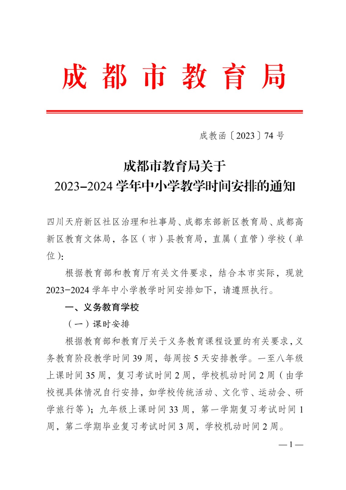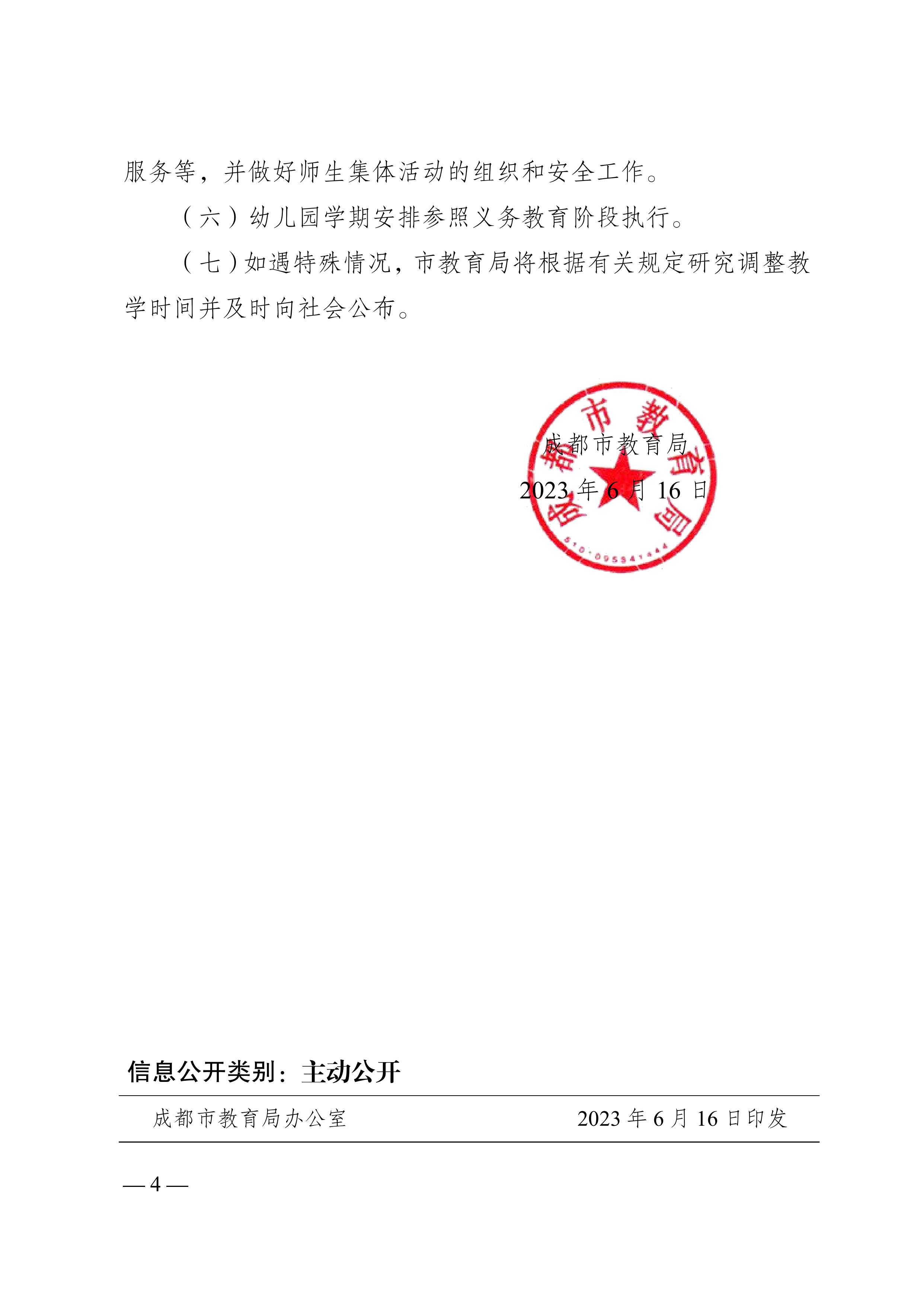 成都市教育局關于 2023-2024 學年中小學教學時間安排的通知