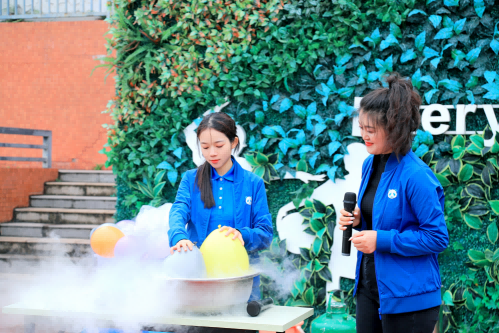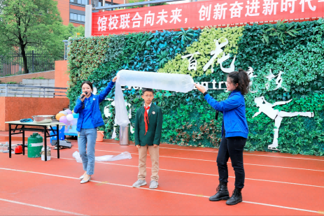 2023年5月9日,四川省科技館把場館“搬”進了實外五龍,給師生們帶來了一場精彩紛呈的科普盛宴,向孩子們普及科學知識,弘揚科學精神。本次“科技館進校園”活動,科技館工作人員為孩子們帶來了“威力無比的空氣炮”“奇妙的煙圈”“吹袋子”等一系列有趣的科學秀。孩子們在觀看和體驗科學實驗的同時還能感知科學原理的奇妙,他們在觀察探究中感嘆聲、光、電、磁的魅力,享受了一場別開生面的“科普盛宴”。