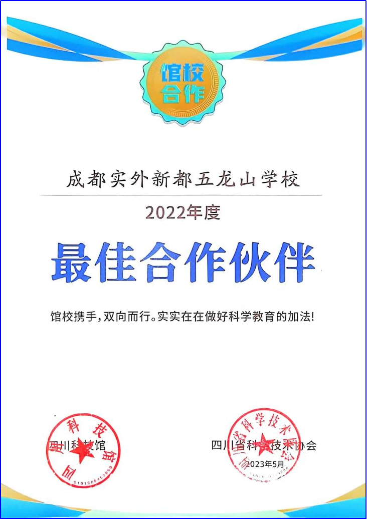 熱烈祝賀實外五龍被四川省科學技術協會、四川省科技館評選為最佳合作伙伴