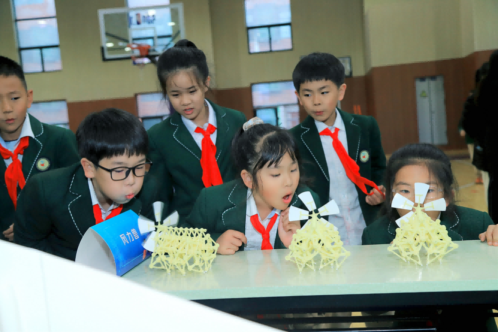 此次“科技館進校園”活動還在我校室內籃球館設置了科學實驗體驗項目。“跳舞回形針”“鐵釘橋”“彈簧擺”“機械蜂鳥”“虛擬現實體驗”等幾十個科學小實驗激發了孩子們繼續探究科學的興趣,把科學的種子播在了孩子們心中。