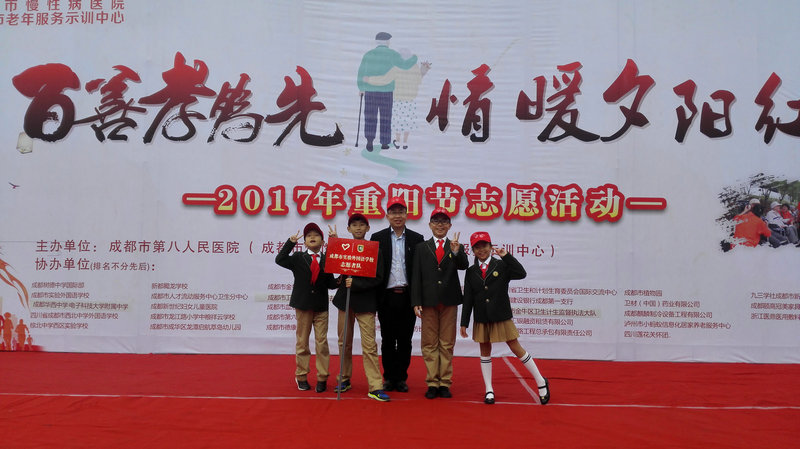 2017年10月25日,成都市第八人民醫(yī)院(成都市慢性病醫(yī)院)舉辦了“百善孝為先 情暖夕陽紅”主題重陽節(jié)志愿服務(wù)活動,成都實外新都五龍山學(xué)校在校長助理韓智軍 老師的組織與帶領(lǐng)下參加了本次活動。