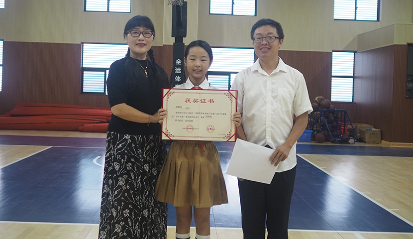 學校領導為在區級比賽獲獎同學頒發獎狀