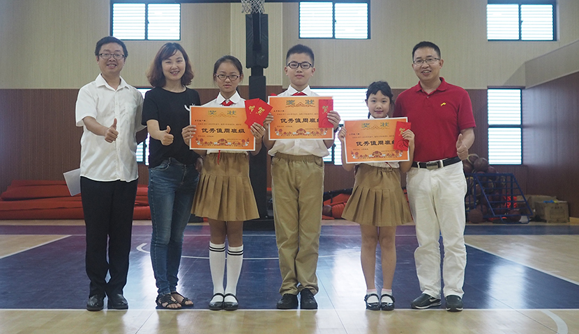 在這個學期,有一批優秀的同學,給我們帶來了感動,他們以身作則,起好模范帶頭作用。這些同學分別被學校評為“優秀學生干部”和“三好學生”。同時,一些各方面表現優秀的班集體獲評“標兵班集體”“優秀班集體”“優秀值周班集”。典禮上羅老師公布了獲獎名單,學校領導現場為這些同學和班級頒發了獎狀并表示鼓勵。