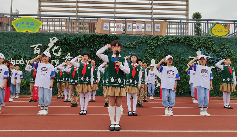 今年是中國(guó)少年兒童先鋒隊(duì)建隊(duì)70周年。5月20日,成都實(shí)外新都五龍山學(xué)校“相約星期一”課程上,三年級(jí)三班舉行“新時(shí)代好少年”為主題的教育活動(dòng)。旨在紀(jì)念這個(gè)偉大的日子,并勉勵(lì)少年兒童爭(zhēng)做新時(shí)代好少年。三三班同學(xué)同學(xué)通過(guò)朗誦、合唱、歌舞表演、重溫入隊(duì)誓詞等形式帶領(lǐng)全體少先隊(duì)員回首崢嶸歲月,牢記光榮使命,做好為共產(chǎn)主義事業(yè)貢獻(xiàn)力量的準(zhǔn)備。