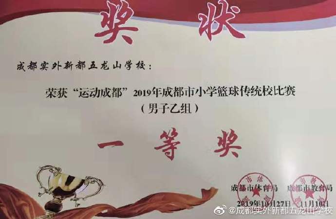 熱烈祝賀我校學生籃球隊在“2019‘運動成都’中小學籃球傳統校比賽”中榮獲一等獎 ?