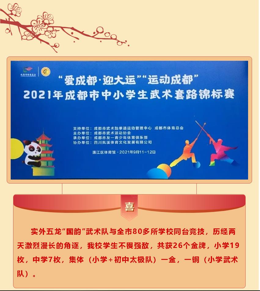 續寫輝煌,捷報頻傳——熱烈祝賀我校在“2021年成都中小學生武術套路錦標賽”中獲得佳績