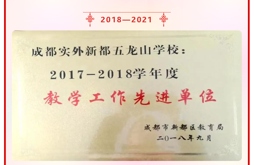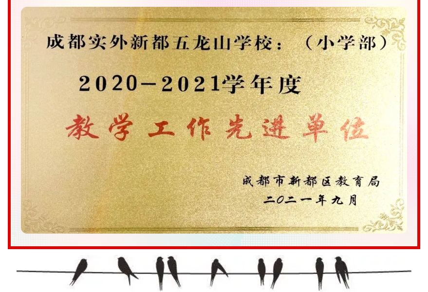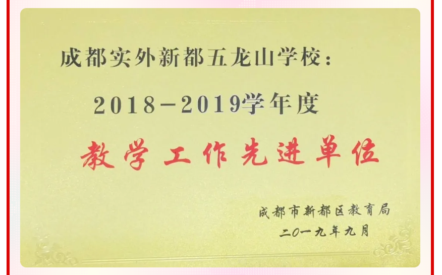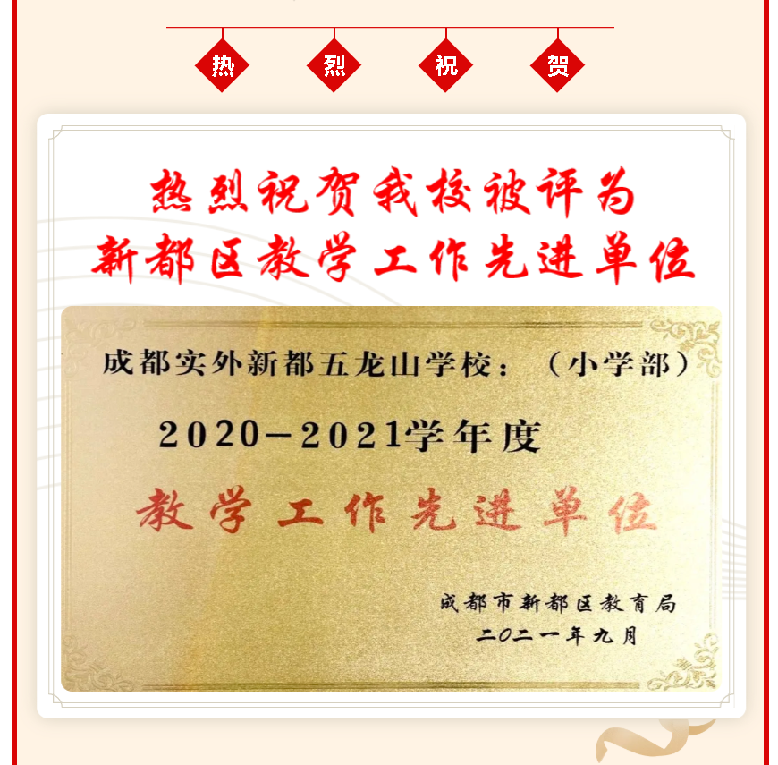 喜報(bào) ▏熱烈祝賀我校連續(xù)四年被評(píng)為新都區(qū)“教學(xué)工作先進(jìn)單位”