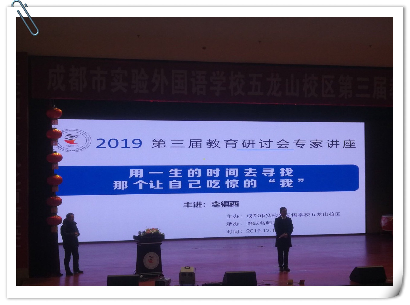 2019年12月17下午,我校全體教師聆聽了國寶級名師李鎮西先生的精彩講座。在講座中,李鎮西先生分享了自己的成長經歷,告訴我們,要做一個讓自己吃驚的自己,要做一個善待他人的自己,要做一個發掘所有可能性的自己,要做一個心中有愛的自己。