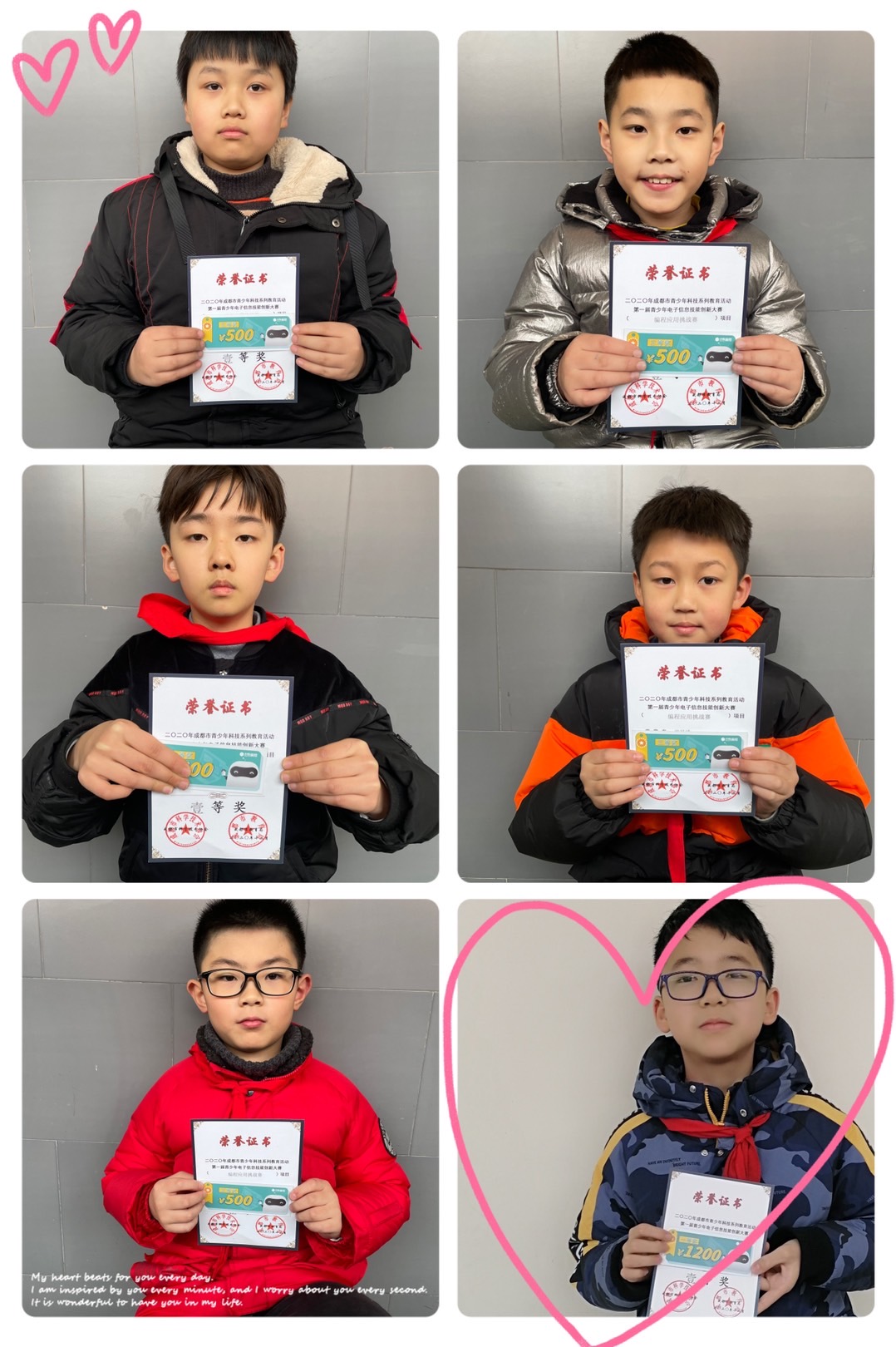 2020年成都市第一屆青少年電子信息技術創新大賽——編程應用挑戰賽簡介:為響應國家號召,普及人工智能編程教育,擴大人工智能在成都市K12教育的影響;以及鍛煉學生的創新思維、邏輯思維、計算機思維與解決問題的能力,成都市教育局與科協聯合舉辦了該賽事。該賽事是一項專業水準高、影響范圍大的信息技術類競賽,此次參賽學校共計103所、參賽人數共計上千人。 在我校信息技術教師賈作飛、胡肖燕老師的指導下,獲獎人數共計12人。 榮獲成都市一等獎的有:四年級彭彥霖、六年級廖晟博和楊卓爾。 榮獲成都市二等獎的有:四年級彭悅峰、六年級徐哲楷。 榮獲成都市三等獎的有:二年級范一新、四年級林睿孜、羅士展、吳邦宏、六年級石峻寧、章璟浩、朱晨曦。 |